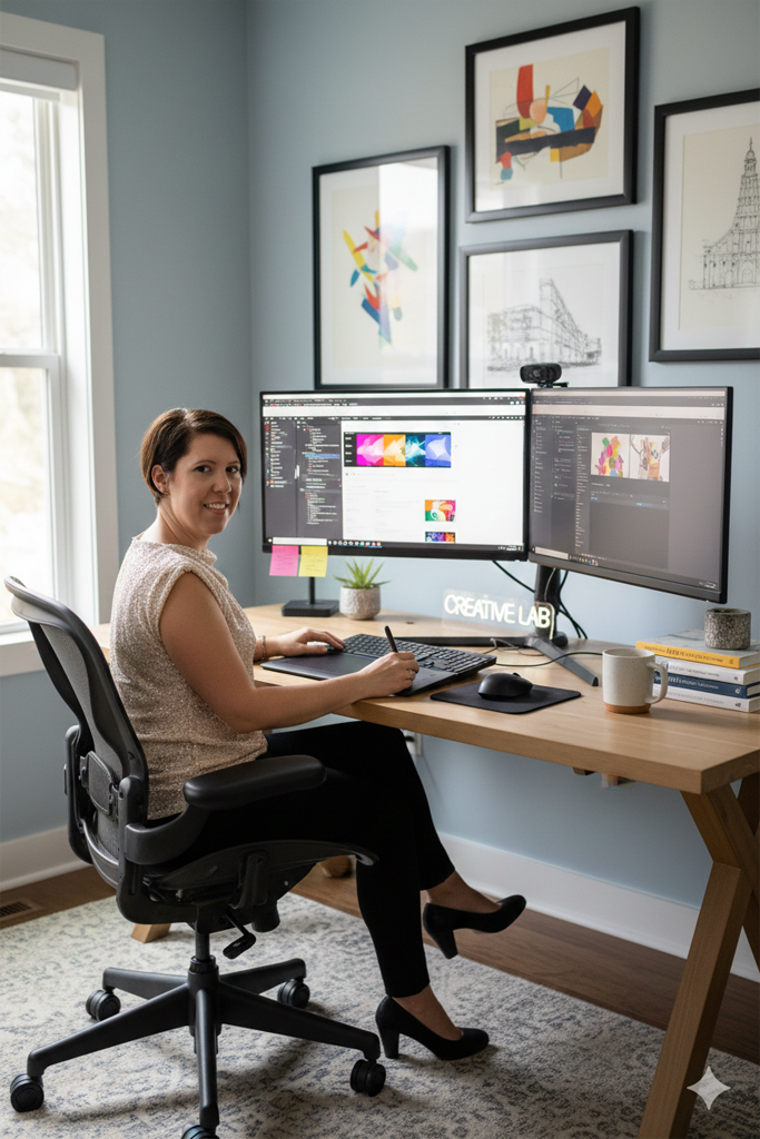 A vizuális alkotás nem csupán a munkám, hanem a lételemem. Az utam a rajztagozatos gimnáziumi évekkel kezdődött, ahol megtanultam a formák és színek dinamikáját, majd tudatosan léptem a digitális irányba: egy kétéves kiadványszerkesztő technikumban sajátítottam el a szakma technikai alapjait.